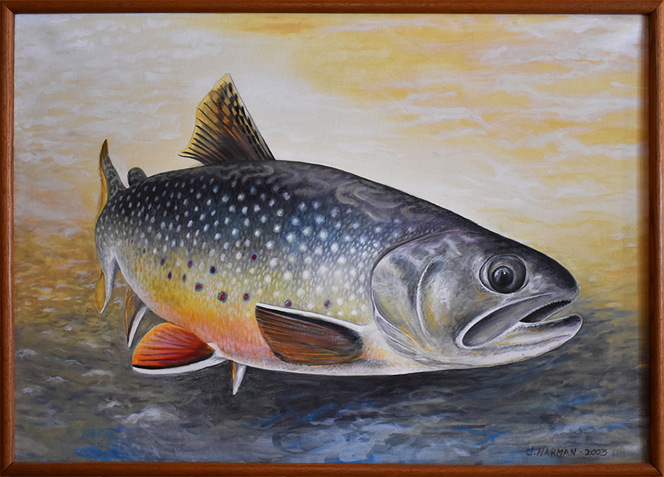 Details: "Two Hearted Brookie" by artist Chris Harman. Chris painted this trout in 2003 and was inspired by our fishing the legendary Two Hearted River in Michigan's Upper Peninsula.